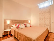 Apt 3 pièces 75 m2, au rez-de-chaussée, situation est. Séjour/salle à manger avec 1 divan-lit et TV (satellite) (écran plat), air-conditionné. Sortie sur la terrasse. 2 chambres, chaque chambre avec: 1 grand-lit (160 cm, longueur 200 cm). Cuisine ouverte (4 plaques de cuisson, four, lave-vaisselle, congélateur, cafetière électrique). Douche/WC. Air-conditionné (en sus). Terrasse 18 m2 partiellement couverte. Meubles de terrasse. Belle vue panoramique sur la mer et les alentours. A disposition: lave-linge, sèche-cheveux. Internet (Connexion WIFI, gratuit). Veuillez noter: 1 animal/ chien autorisé. Entrée privée. Fenêtre haute dans la chambre double.- Installations