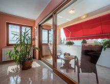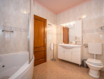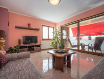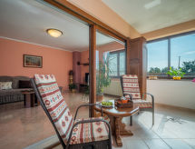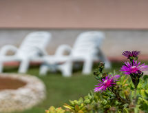Maison jumelée 3 pièces 147 m2. Séjour/salle à manger 40 m2 avec 1 divan-lit double (160 cm, longueur 200 cm), TV (satellite) (écran plat), air-conditionné. Sortie sur la terrasse. 2 chambres, chaque chambre avec: 1 lit double (2 x 90 cm, longueur 200 cm). Cuisine (4 plaques de cuisson, four, lave-vaisselle, four micro-ondes, congélateur, cafetière électrique). Bain/bidet/WC, douche/bidet/WC. Terrasse 12 m2, couverte, terrasse 10 m2, couverte. Meubles de terrasse, chaises longues. Vue sur le jardin. A disposition: fer à repasser, chaise haute pour enfant, lit bébé, sèche-cheveux. Internet (Connexion WIFI, gratuit).- Activités à proximité