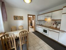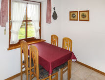 Apt 2 pièces 65 m2, au rez-de-chaussée. Logement idéal pour 2 adultes + 2 enfants. Aménagement fonctionnel et avec beaucoup de bois: séjour avec TV (satellite), lecteur CD, chaîne stéréo et DVD. Sortie sur la terrasse. 1 chambre avec 1 x 2 lits superposés, 1 lit double. Cuisine (4 plaques de cuisson, four, grille-pain, bouilloire électrique, cafetière électrique) avec table pour les repas. Bain/WC. Chauffage par le sol. A disposition: chaise haute pour enfant, lit bébé. Veuillez noter: logement non-fumeur. 1 animal/ chien autorisé. Entrée privée, détecteur de fumée, extincteur.- Installations