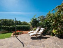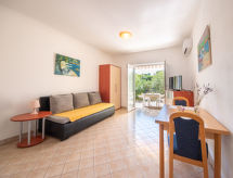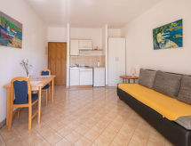 Studio 33 m2, au rez-de-chaussée. Studio avec 1 divan-lit double (160 cm, longueur 200 cm), table pour les repas, coin-cuisine et TV (satellite) (écran plat), air-conditionné. Sortie sur la terrasse. Douche/WC. Terrasse 8 m2 partiellement couverte. Meubles de terrasse. A disposition: Internet (Connexion WIFI, gratuit).- Installations