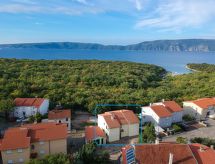Immeuble "Jasna". À 11 km du centre de Krk, à 11 km du centre de Malinska, situation tranquille, ensoleillée, à 400 m de la mer, à 400 m de la plage, dans une impasse. En commun: terrain 570 m2. Meubles de jardin, barbecue. Infrastructures de la Maison: accès internet. Place de parking près de la maison sur le terrain. Magasins 500 m, restaurant 1 km, plage de graviers 750 m, plage de rochers, plage bétonnée 400 m.Interior