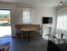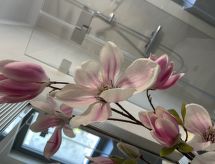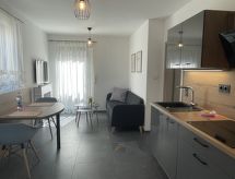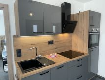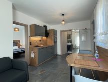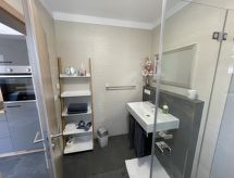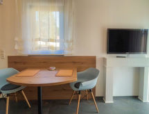 "Joel", apt 2 pièces 33 m2, au rez-de-chaussée. Aménagement moderne et de bon goût: séjour/salle à manger avec TV (satellite). Sortie sur la terrasse. 1 chambre double. Cuisine ouverte (four, lave-vaisselle, 4 plaques vitrocéramiques, cafetière électrique). Douche/WC. Meubles de terrasse. A disposition: Internet (Connexion WIFI, gratuit). Veuillez noter: logement non-fumeur. Entrée privée, détecteur de fumée.- Installations