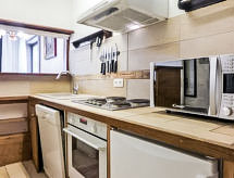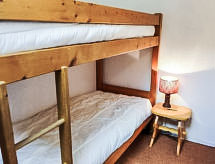 Apt 4 pièces 48 m2 sur 2 niveaux au 4ème étage. Séjour/salle à manger avec TV. Sortie sur le balcon. Coin cuisine (4 plaques de cuisson, four, lave-vaisselle, bouilloire électrique, cafetière électrique). À l'étage supérieur: 1 chambre avec 1 grand-lit. 2 chambres, chaque chambre avec: 1 x 2 lits superposés. Bain/WC. Chauffage électrique. Balcon, situation sud-est. Très belle vue sur les montagnes. A disposition: Internet (Connexion WIFI, gratuit). Veuillez noter: TV seulement FR. Détecteur de fumée.- Caractéristiques de l'hébergement