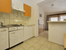 Apt 2 pièces 42 m2 au 1er étage, situation sud-ouest. Séjour/salle à manger 15 m2 avec 1 divan-lit double (140 cm, longueur 200 cm), TV (satellite). Sortie sur la terrasse. Entrée avec air-conditionné. 1 chambre avec 1 lit double (2 x 90 cm, longueur 200 cm). Cuisine ouverte (2 plaques de cuisson, lave-vaisselle, congélateur, cafetière électrique). Douche/WC. Air-conditionné (en sus). Terrasse 8 m2, couverte. Meubles de terrasse. A disposition: Internet (Connexion WIFI, gratuit). 1 animal/ chien autorisé.- Installations