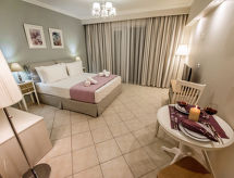 "Junior Suite" studio 30 m2. Aménagement confortable et agréable: séjour/chambre à coucher ouvert avec 1 lit double et TV (satellite) (écran plat). Cuisine ouverte (mini-four, 2 plaques vitrocéramiques) avec petite table pour les repas. Douche/WC. Air-conditionné. Balcon ou terrasse. Belle vue sur la piscine et le jardin. A disposition: coffre-fort, fer à repasser, sèche-cheveux. Internet (Connexion WIFI, gratuit). Veuillez noter: maison non-fumeur. 0831Κ133Κ0521701- Caractéristiques de l'hébergement
