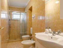 Séjour/salle à manger avec TV (satellite). Sortie sur la terrasse. 1 chambre avec 2 lits (90 cm, longueur 200 cm), air-conditionné. Cuisine ouverte (lave-vaisselle, 4 plaques vitrocéramiques, grille-pain, bouilloire électrique, four micro-ondes, congélateur, cafetière électrique). Douche/bidet/WC, WC séparé. À l'étage supérieur: 1 chambre avec 3 lits (90 cm, longueur 200 cm). 1 chambre avec 1 grand-lit (180 cm, longueur 200 cm), air-conditionné. Sortie sur le balcon. 1 chambre avec 2 lits (90 cm, longueur 200 cm). WC séparé, bain/douche/WC. Balcon 10 m2, terrasse 15 m2. Meubles de terrasse, mobilier de balcon, barbecue, chaises longues (2). Place de parking (cloturée, 2 Voitures). MA19014450- Installations