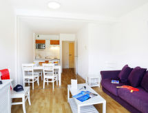 Beau complexe de vacances "Ker Mael", de 3 étages. 71 appartements dans la résidence. À 2.5 km du centre de St. Briac, à 7 km du centre de Dinard, à 17 km du centre de St. Malo, à 80 m de la mer, route à traverser. En commun: terrain 2 ha avec plantes et arbres, piscine chauffée, cloturée (15 x 7 m, disponibilité saisonnière: 22.Avr. - 16.Sep.). Infrastructures de la résidence: réception, salon, accès internet, Connexion WIFI, sauna, salle fitness, ping-pong, ascenseur, lave-linge (en commun, en sus). Place de parking sur le terrain. Magasins 1 km, plage de sable 80 m. Terrain de golf (18 trous) 800 m. Veuillez noter: La photo ne montre qu’un exemple de location de vacances. Les locations peuvent également se différencier par leur superficie, la disposition des pièces et leur équipement.Interior