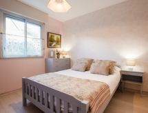 Maison 4 pièces 82 m2 sur 2 niveaux, situation est. Aménagement agréable: séjour/salle à manger avec TV. Sortie sur la terrasse. 1 chambre avec 1 grand-lit (140 cm). Cuisine ouverte (4 plaques de cuisson, four, lave-vaisselle, four micro-ondes, congélateur, cafetière électrique, Capsules pour machine à café (Dosette Dolce Gusto) (NON INCLUSES)). Douche, WC séparé. À l'étage supérieur: 1 chambre avec 2 lits (90 cm, longueur 200 cm). 1 chambre avec 1 grand-lit (140 cm, longueur 190 cm). Bain/douche/WC. Chauffage électrique. Terrasse 22 m2 partiellement couverte. Meubles de terrasse, chaises longues (2). A disposition: lave-linge. Internet (Connexion WIFI, gratuit). Veuillez noter: 1 animal/ chien autorisé. TV seulement FR. Détecteur de fumée.- Installations