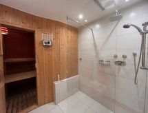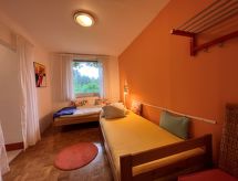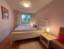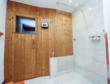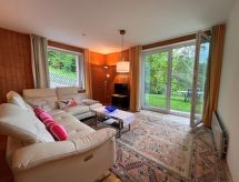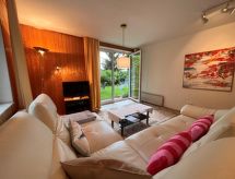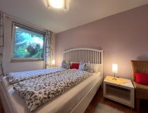 Apt 3 pièces 75 m2, sous-sol de plain-pied. Aménagement agréable et plaisant: séjour/salle à manger avec table pour les repas et TV (satellite) (écran plat), radio. Sortie sur le jardin. 1 chambre double. 1 chambre avec 2 lits et douche/WC. Cuisine ouverte (four, lave-vaisselle, 4 plaques vitrocéramiques, four micro-ondes). Bidet, WC séparé. Terrasse. Meubles de terrasse, chaises longues (4). Belle vue sur les alentours. A disposition: sauna (en sus), fer à repasser, sèche-cheveux. Internet (Connexion WIFI, gratuit). Veuillez noter: entrée privée, détecteur de fumée, extincteur.- Installations
