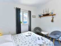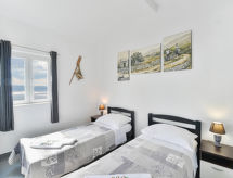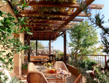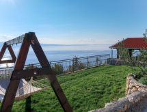 Maison 4 pièces 128 m2 sur 2 niveaux. Séjour avec 1 divan-lit double (160 cm), TV (satellite) (écran plat), chaîne stéréo. Cuisine (4 plaques de cuisson, lave-vaisselle, congélateur, cafetière électrique) avec table pour les repas. Sortie sur la terrasse. Bain/WC. À l'étage supérieur: entrée avec air-conditionné. 2 chambres, chaque chambre avec: 1 lit double. 1 chambre avec 2 lits. Douche/WC. Terrasse couverte. Meubles de terrasse, chaises longues. Vue panoramique sur la mer. A disposition: coffre-fort. Internet (Connexion WIFI, gratuit). Veuillez noter: maison non-fumeur. Maximum 2 animaux/ chiens autorisés. Energie solaire (220 volt, 500W). Eau chaude uniquement par énergie solaire.- Caractéristiques de l'hébergement
