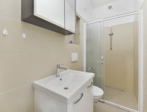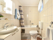 Maison individuelle "Kilo (OMI305)", de 2 étages. Dans le haut de la station de Krilo Jesenice, à 5 km du centre de Krilo Jesenice, à 6 km du centre de Dugi Rat, à 11 km du centre d'Omiš, situation isolée, à 5 km de la mer. A usage privé: terrain 400 m2 avec pelouse et plantes, piscine (7 x 3 m, 24 m2, profondeur 150 cm, disponibilité saisonnière: 04.Avr. - 06.Nov.) avec marches intérieures. Pergola, terrasse, meubles de jardin, barbecue. Infrastructures de la Maison: accès internet, lave-linge. Accès en voiture par un chemin étroite de 650 m de long (chemin non goudronné). Place de parking (pour 3 voitures) sur le terrain. Magasins 5 km, plage de graviers 5 km. A usage privé : taverne traditionnelle. La propriété est sous vidéo surveillance. Il est possible d'acheter des produits autochtones (sur demande, en sus).Interior