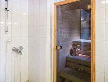 175 km au nord de Rovaniemi, situé dans le centre touristique de Levi dans la zone Isorakka. Appartement en bois rond dans petite maison mitoyenne, construit en 1999, rénové en 2009. Séjour avec canapé, kitchenette, mezzanine avec lit double et deux lits jumeaux, sauna, salle d'eau, petit porche. Appartement en rondins confortable et joliment meublé à la fin d'une maison en rangée. L'appartement est une maison de vacances idéale pour un couple ou une petite famille. Les pistes de ski de fond commencent au coin de la rue et un skibus qui passe à proximité vous emmène facilement pour profiter des pistes de Levi. Une belle vue sur la forêt s'ouvre depuis les fenêtres du salon et de la cuisine et l'emplacement paisible garantit des vacances incroyables toute l'année.- Installations