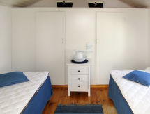 "Kollevik (BLE083)", maison 5 pièces 58 m2 sur 2 niveaux. Aménagement agréable: séjour/salle à manger avec table pour les repas et TV (satellite). Sortie sur la véranda. 1 chambre ouverte avec 1 lit double. Sortie sur le jardin. 1 chambre avec 1 lit. 1 chambre avec 2 lits. Cuisine ouverte (four, lave-vaisselle, 4 plaques vitrocéramiques, grille-pain, bouilloire électrique, four micro-ondes, congélateur, cafetière électrique). Douche/WC. Chauffage, chauffage électrique. À l'étage supérieur: (échelle) galerie mansardée, ouverte, hauteur plafond 30 - 150 cm avec 2 couchages. Sol en bois. Meubles de terrasse, barbecue, jardin d'hiver. A disposition: lave-linge, fer à repasser, chaise haute pour enfant, lit bébé. Internet (Connexion WIFI, gratuit). Veuillez noter: maison non-fumeur. Détecteur de fumée, extincteur. La répartition des lits est flexible: Il y a plus de couchages que le nombre maximum de personnes admis dans la location. Ce nombre maximum doit néanmoins être respecté.- Installations