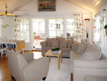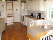 Lotissement de vacances accueillant "Kollevik". À 3 km du centre de Karlshamn, à 250 m de la mer. A usage privé: terrain 300 m2 (clôturé) avec pelouse, place de parking (pour 2 voitures) près de la maison. Supermarché 3 km, gare ferroviaire "Karlshamn" 3 km, ferry-boat "Helsingborg" 182 km, plage de sable 400 m, piscine couverte 3 km.Interior