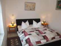 Apt 2 pièces 50 m2 au 1er étage. Clair, aménagement moderne et de bon goût: séjour/salle à manger avec table pour les repas, TV (satellite) et chaîne stéréo. 1 chambre double. Coin cuisine (4 plaques de cuisson, four, grille-pain, bouilloire électrique, four micro-ondes, cafetière électrique). Douche/WC. Chauffage au fuel. Jardinet. Veuillez noter: maximum 1 animal/ chien de petite taille autorisé. Détecteur de fumée, extincteur.- Installations