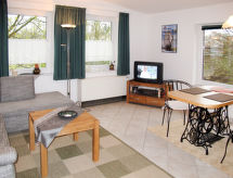 Dépendance "Kornblume". À 500 m du centre de Zempin, à 3 km du centre de Zinnowitz, à 13 km du centre de Wolgast, dans un quartier résidentiel, à 350 m de la mer. En commun: terrain 2'000 m2 (clôturé), place de parking sur le terrain. Supermarché 400 m, plage de sable 350 m. Veuillez noter: certaines parties de la maison sont fermées et inoccupées. Route principale 20 m de la maison. La propriété référencée de9092.625.1 est située sur le même terrain.Interior