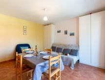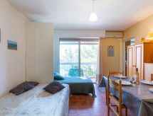 Studio 25 m2 au 2ème étage. Logement idéal pour 2 adultes + 1 enfant. Aménagement simple et fonctionnel: séjour/salle à manger avec 1 divan-lit (140 cm, longueur 190 cm), 1 lit rabattable (90 cm, longueur 190 cm), TV (écran plat), radio et air-conditionné. Sortie sur le balcon. Petite cuisine (2 plaques de cuisson, grille-pain, bouilloire électrique, four micro-ondes, cafetière électrique). Douche/WC. Balcon 6 m2. Mobilier de balcon. A disposition: fer à repasser. Internet (Connexion WIFI, en sus). Veuillez noter: 1 animal/ chien de petite taille autorisé. TV seulement FR. Détecteur de fumée.- Caractéristiques de l'hébergement
