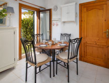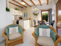 Beau bungalow accueillant, confortable "La Alhambra". Dans la localité, à 2.5 km du centre de Dénia, situation tranquille, à 2.7 km de la mer, à 3 km de la plage. En commun: grand, beau jardin entretenu avec pelouse et arbres, piscine (18 x 11 m, profondeur 110 - 180 cm, disponibilité saisonnière: 01.Jan. - 31.Dec.) avec marches intérieures. Bassin pour les enfants, douche extérieure, meubles de jardin. A usage privé: jardin avec pelouse et fleurs. Meubles de jardin, place de parking sur le terrain. Supermarché 1 km, bar 450 m, plage de sable "Marineta Casiana" 3 km. Port plaisance 3 km, ecole de surf 3 km, ecole de voile 3 km. Le propriétaire n'accepte pas les groupes de jeunes.Interior