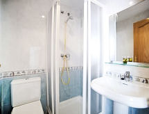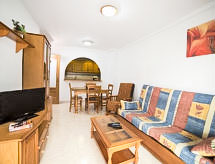 "La Ermita", apt 3 pièces 69 m2 au 2ème étage. Logement idéal pour 4 adultes + 2 enfants. Aménagement simple et plaisant: séjour/salle à manger 18 m2 avec 1 divan-lit double et Télévision numérique. Sortie sur la terrasse. 1 chambre avec 2 lits (90 cm, longueur 190 cm), douche/WC. 1 chambre avec 1 grand-lit (135 cm, longueur 190 cm), bain/WC. Cuisine ouverte (4 plaques de cuisson, four, grille-pain, bouilloire électrique, four micro-ondes, congélateur, cafetière électrique). Chauffage. Meubles de terrasse. Vue sur la piscine. A disposition: lave-linge, fer à repasser, chaise haute pour enfant, lit bébé jusqu'à 2 ans, sèche-cheveux. AT-447359-A- Activités à proximité