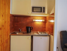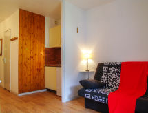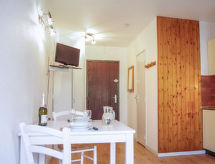 Studio 22 m2 au 2ème étage. Aménagement très simple: séjour/salle à manger avec 1 divan-lit double (140 cm, longueur 190 cm), TV. Coin cuisine (2 plaques de cuisson, bouilloire électrique, four micro-ondes, cafetière électrique). Bain/WC. Chauffage électrique. Petit balcon, situation nord-est. Vue sur les montagnes. A disposition: Internet (Connexion WIFI, en sus). Veuillez noter: TV seulement FR. Détecteur de fumée.- Caractéristiques de l'hébergement