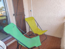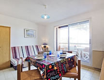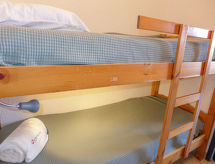 Studio 22 m2 au 1er étage. Aménagement simple: séjour/salle à manger avec baie vitrée avec 1 divan-lit double (1 x 130 cm, longueur 190 cm), TV et ventilateur. Sortie sur la terrasse. Entrée avec 1 x 2 lits superposés (80 cm, longueur 190 cm), ventilateur. Coin cuisine (four, 2 plaques vitrocéramiques, four micro-ondes, cafetière électrique, Capsules pour machine à café (TASSIMO) (NON INCLUSES)). Douche/WC. Chauffage électrique. Terrasse 7 m2. Meubles de terrasse. Vue éloignée sur la mer. A disposition: Internet (Connexion WIFI, en sus). Place de parking No 205 (cloturée). Veuillez noter: non recommandé pour des enfants en bas âge. TV seulement FR. Détecteur de fumée.- Caractéristiques de l'hébergement