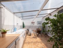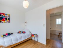 Maison mitoyenne 4 pièces 65 m2. Rénovée en 2020: séjour/salle à manger avec TV (écran plat). Sortie sur le jardin, sur la loggia. 1 chambre avec 1 grand-lit (140 cm, longueur 190 cm). 1 chambre avec 1 lit gigogne (2 pers. 2 x 80 cm, longueur 190 cm). 1 chambre avec 2 lits (90 cm, longueur 190 cm). Cuisine ouverte (4 plaques de cuisson, four, lave-vaisselle, grille-pain, bouilloire électrique, four micro-ondes, cafetière électrique, Capsules pour machine à café (Dolce Gusto) (NON INCLUSES)). Salle de bains, WC séparé. Chauffage électrique. Sol en parquet. Jardin 600 m2. Meubles de terrasse, loggia. A disposition: lave-linge, sèche-linge, fer à repasser, chaise haute pour enfant, lit bébé. Internet (Connexion WIFI, en sus). Veuillez noter: 1 animal/ chien autorisé. Détecteur de fumée.- Installations