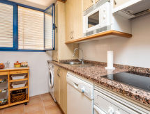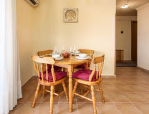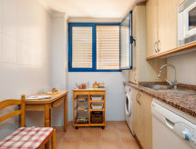 Grande petite résidence accueillante, confortable "La Marjal". Dans la localité, à 1.5 km du centre de Dénia, situation tranquille, ensoleillée, à 700 m de la mer, à 700 m de la plage. En commun: terrain (clôturé) avec pelouse et arbres, piscine rectangulaire (20 x 10 m, profondeur 110 - 200 cm, disponibilité saisonnière: 01.Jan. - 31.Dec.). Bassin pour les enfants, douche extérieure, place de parking No 180. Supermarché 650 m, restaurant, bar 350 m, plage de sable 700 m. Port plaisance 3.5 km, marina 3.5 km, ecole de surf 1.5 km, ecole de voile 1.5 km, tennis 600 m. Le propriétaire n'accepte pas les groupes de jeunes.Interior