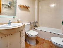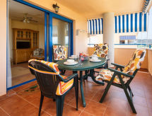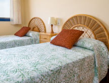 "La Marjal", apt 3 pièces 75 m2. Spacieux, aménagement confortable et plaisant: séjour/salle à manger avec Télévision numérique, air-conditionné, ventilateur et chauffage à air chaud. Sortie sur la terrasse. 1 chambre avec 2 lits (90 cm, longueur 200 cm), bain/bidet/WC, air-conditionné, ventilateur et chauffage à air chaud. 1 chambre avec 2 lits (90 cm, longueur 200 cm), ventilateur. (four, lave-vaisselle, 4 plaques vitrocéramiques, grille-pain, four micro-ondes, congélateur, cafetière électrique). Douche/WC. Grande terrasse 22 m2. Meubles de terrasse. Très belle vue sur les montagnes. A disposition: lave-linge, fer à repasser, sèche-cheveux. Internet (Connexion WIFI, gratuit). Place de parking No 180. Veuillez noter: TV seulement ES. R000000001- Activités à proximité