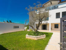 Bel immeuble "La Mer". Dans le quartier de Veli Vrh, à 3 km du centre de Pula, situation ensoleillée, à 3 km de la mer, dans une impasse. En commun: terrain 2'000 m2 (clôturé), jardin 300 m2 avec pelouse et plantes, piscine couverte rectangulaire chauffée (6 x 5 m, profondeur 140 cm, disponibilité saisonnière: 01.Jan. - 31.Dec.) avec marches intérieures. Ping-pong, terrasse (40 m2), meubles de jardin, barbecue, espace de jeux pour les enfants (toboggan). Infrastructures de la Maison: accès internet, sauna (en sus). Bain à remous , salle de relaxation, spa, baby foot, chauffage central. Place de parking près de la maison sur le terrain. Magasins 1 km, supermarché 2.5 km, restaurant 1 km, plage de graviers 4.5 km, plage de rochers 4.5 km. Tennis 5 km, chemins de randonnées pédestres depuis la maison 200 m, piste cyclable 250 m. Attractions à proximité: Amphitheater 3 km, NP Brijuni 6 km. Piscine à contre-courant. À utilisation commune (inclus): terrasse (50m2), terrain de football, pinball, jeu de fléchettes. Possibilité également de se détendre dans le sauna et de se faire masser (sur demande, coût supplémentaire).Interior