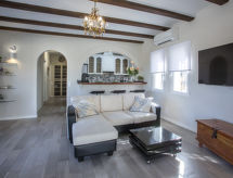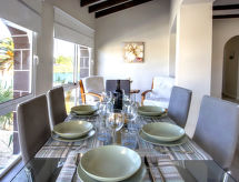 Maison accueillante, confortable "La Pansa", de 2 étages. Dans la localité, à 3.5 km du centre de Dénia, situation tranquille, ensoleillée, à 3 km de la mer, à 3 km de la plage. A usage privé: jardin naturel, piscine (8 x 4 m, profondeur 110 - 200 cm, disponibilité saisonnière: 01.Jan. - 31.Dec.). Douche extérieure, tonnelle, terrasse, meubles de jardin, barbecue, espace barbecue, place de parking (couvert). Supermarché 2.7 km, restaurant 1.9 km, bar 1.4 km, plage de sable 3 km. Port plaisance 3 km, ecole de surf 3 km, ecole de voile 3 km. Le propriétaire n'accepte pas les groupes de jeunes.Interior