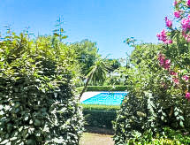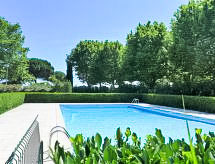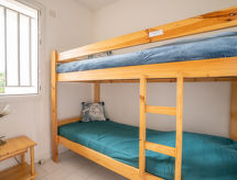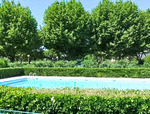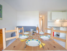 Apt 3 pièces 40 m2, au rez-de-chaussée. Séjour/salle à manger avec 1 divan-lit double (140 cm), TV (écran plat). Sortie sur la terrasse. 1 chambre avec 1 grand-lit (140 cm, longueur 190 cm). 1 petite chambre d'enfants avec 1 x 2 lits superposés (70 cm, longueur 190 cm). Coin cuisine (3 plaques vitrocéramiques, grille-pain, bouilloire électrique, four micro-ondes, congélateur, cafetière électrique). Salle de bains, WC séparé. Chauffage électrique. Terrasse 8 m2, situation sud, jardinet 6 m2. Meubles de terrasse. Vue sur la piscine et le jardin. A disposition: Internet (Connexion WIFI, en sus). Place de parking. Veuillez noter: 1 animal/ chien autorisé. Détecteur de fumée.- Caractéristiques de l'hébergement