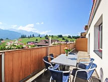 Apt 4 pièces 105 m2 au 1er étage. Spacieux, aménagement confortable: entrée. 2 chambres doubles. 1 chambre double avec douche/WC. Sortie sur la terrasse. Grand séjour/salle à manger avec table pour les repas et TV (câblée) (écran plat). Sortie sur la terrasse. Cuisine ouverte (four, lave-vaisselle, 4 plaques vitrocéramiques, four micro-ondes, cafetière électrique). Douche, WC séparé. Grande terrasse 22 m2. Meubles de terrasse. Superbe vue panoramique sur les alentours. A disposition: coffre-fort, sèche-cheveux. Internet (Connexion WIFI, gratuit). Veuillez noter: logement non-fumeur. Détecteur de fumée.- Caractéristiques de l'hébergement