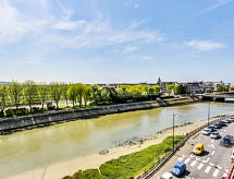 Apt 3 pièces 70 m2 au 6ème étage. Spacieux et clair: grande entrée. Séjour/salle à manger avec TV (écran plat). Sortie sur le balcon, orientée ouest. 1 chambre avec 1 grand-lit (1 x 140 cm, longueur 190 cm). 1 chambre avec 2 lits (80 cm, longueur 190 cm). Cuisine (4 plaques de cuisson, four, lave-vaisselle, grille-pain, bouilloire électrique, four micro-ondes, cafetière électrique). Salle de bains, douche, WC séparé. Chauffage au gaz. Belle vue panoramique sur les alentours. A disposition: lave-linge. Internet (Connexion WIFI, gratuit). Veuillez noter: logement non-fumeur. Détecteur de fumée.- Caractéristiques de l'hébergement
