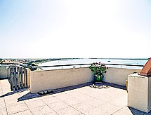 Apt 4 pièces 76 m2 au 3ème étage. Aménagement très agréable: séjour/salle à manger avec TV, radio et DVD. Sortie sur la terrasse. 1 chambre avec 2 lits (90 cm). 1 chambre avec 1 grand-lit (140 cm). 1 chambre avec 1 x 1 lits superposés (130 cm), 1 grand-lit (140 cm). Cuisine ouverte (4 plaques de cuisson, four, lave-vaisselle, four micro-ondes, congélateur). Bain/douche, WC séparé. Chauffage électrique. Balcon 18 m2, situation sud-est, grande terrasse 51 m2, situation sud-est. Meubles de terrasse, chaises longues. Superbe vue panoramique sur la mer. A disposition: lave-linge, fer à repasser. Internet (Connexion WIFI, en sus). Veuillez noter: détecteur de fumée. Escalier raide pour accéder à la terrasse solarium en partie couverte.- Caractéristiques de l'hébergement
