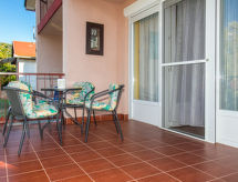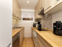 Maison jumelée 3 pièces 90 m2. Partiellement mansardée, aménagement confortable: séjour/salle à manger avec TV. Sortie sur la terrasse. Cuisine (4 plaques de cuisson, four micro-ondes, congélateur). Douche/WC. À l'étage supérieur: 1 chambre avec 2 lits et 1 lit gigogne. 1 chambre avec 2 lits gigognes. Sortie sur le balcon. 2 terrasses. Meubles de terrasse, barbecue, chaises longues. A disposition: lave-linge. Place de parking (2 Voitures). MA20018546- Installations