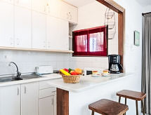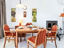 Maison 2 pièces 72 m2. Logement idéal pour 2 adultes + 2 enfants. Séjour/salle à manger avec 1 divan-lit, cheminée, TV (satellite), Télévision numérique, radio, air-conditionné et chauffage à air chaud. 1 chambre double avec 1 grand-lit (160 cm, longueur 200 cm). Cuisine (2 plaques de cuisson, mini-four, four, grille-pain, four micro-ondes, congélateur, cafetière électrique) avec bar. Douche/WC. Terrasse 15 m2, couverte. Vue éloignée sur la mer. A disposition: lave-linge, fer à repasser, chaise haute pour enfant, lit bébé, sèche-cheveux. Internet (Connexion WIFI, gratuit). Place de parking près de la maison. Adapté(e) aux familles. VFT/MA/06680- Installations