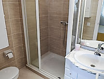 Apt 3 pièces 64 m2 au 1er étage. Clair, aménagement confortable: séjour/salle à manger avec Télévision numérique et écran plat. Sortie sur la terrasse. 1 chambre avec 1 grand-lit, lavabo, douche/bidet/WC, air-conditionné et chauffage à air chaud. 1 chambre avec 1 lit gigogne (2 pers.). Cuisine ouverte (mini-four, lave-vaisselle, 4 plaques vitrocéramiques, four micro-ondes, congélateur, cafetière électrique). Douche/WC. Terrasse 14 m2. Meubles de terrasse. Belle vue sur la mer, la piscine et le jardin. A disposition: lave-linge. Internet (Connexion WIFI, gratuit). Garage No 13. 1 animal/ chien autorisé. AT-441846-A- Installations