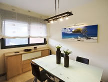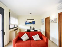 Urb Ampolla Mar: Maison moderne, accueillante, confortable "Laura", de 2 étages, jumelée, année de construction 2006. Dans la localité, à 1 km du centre de l'Ampolla, situation ensoleillée quartier résidentiel, à 200 m de la mer, à 200 m de la plage. A usage privé: terrain 250 m2 (clôturé), piscine rectangulaire (4 x 8 m, disponibilité saisonnière: 01.Jan. - 31.Dec.) avec marches intérieures et alarme de sécurité. Douche extérieure, jardinet (40 m2), pergola (21 m2), meubles de jardin, barbecue. Infrastructures de la Maison: Connexion WIFI, air-conditionné, système d'alarme, lave-linge. Place de parking (pour 2 voitures, nombre de places limité) sur le terrain, parking public possible dans la rue. Supermarché 1 km, restaurant 350 m, gare ferroviaire "l'Ampolla" 1.5 km. Port plaisance 1 km, marina 1 km, chemins de randonnées pédestres depuis la maison 3 km. Attractions à proximité: Parque natural Delta del Ebro 5 km, Portaventura 65 km, Pitch & putt 2 km.Interior