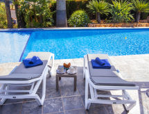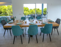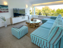 La Sella à 7 km de Dénia: Villa moderne, confortable, luxueuse "Laureen", environnée par les arbres. Dans le quartier de La Sella en-dehors de la localité, à 8 km du centre de Dénia, situation tranquille sur un versant, quartier résidentiel, zone avec peu de trafic, à 6 km de la mer, à 6 km de la plage. A usage privé: grand, beau jardin entretenu (clôturé) avec plantes et arbres, piscine rectangulaire (10 x 5 m, profondeur 110 - 220 cm, disponibilité saisonnière: 01.Jan. - 31.Dec.) avec marches intérieures. Douche extérieure, pergola, terrasse, meubles de jardin, barbecue, place de parking (pour 2 voitures) sur le terrain. Magasins 2 km, centre commercial 7 km, restaurant 2 km, café 2 km, plage de sable 10 km. Port plaisance 10 km, marina 10 km, terrain de golf (27 trous) 3 km, ecole de surf 10 km, ecole de voile 10 km, tennis 2 km, centre équestre 5 km. Attractions à proximité: Golf Resort La Sella 5 km. Veuillez noter: voiture recommandée. Le propriétaire n'accepte pas les groupes de jeunes.Interior