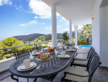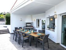 "Villa Laureen", villa 4 pièces 200 m2. Spacieux et clair, aménagement très agréable et de style: séjour/salle à manger avec TV (satellite), air-conditionné et chauffage à air chaud. Sortie sur la terrasse, sur la piscine. 1 chambre avec 1 grand-lit (180 cm, longueur 200 cm), douche/WC, Télévision numérique, air-conditionné et chauffage à air chaud. 1 chambre avec 1 grand-lit (180 cm, longueur 200 cm), air-conditionné et chauffage à air chaud. 1 chambre avec 2 lits (90 cm, longueur 200 cm), air-conditionné et chauffage à air chaud. Grande cuisine ouverte (four, lave-vaisselle, 3 plaques à induction, grille-pain, four micro-ondes, congélateur, cafetière électrique). Douche/WC. Grande terrasse couverte, situation est. Meubles de terrasse, barbecue, chaises longues (6). Superbe vue sur la mer, les montagnes et la vallée. A disposition: lave-linge, fer à repasser, chaise haute pour enfant, lit bébé, sèche-cheveux. Internet (Connexion WIFI, gratuit). VT-493134-A- Installations