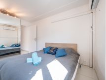 Apt 3 pièces 71 m2 au 4ème étage. Aménagement confortable et agréable: séjour/salle à manger avec 2 divans-lits (120 cm, longueur 190 cm), TV (écran plat), air-conditionné. Sortie sur la terrasse. 1 petite chambre avec 1 grand-lit (140 cm, longueur 190 cm). 1 chambre avec 2 lits (90 cm, longueur 190 cm), air-conditionné. Cuisine (four, lave-vaisselle, 4 plaques à induction, four micro-ondes). Douche, WC séparé. Chauffage à air chaud. Terrasse 8 m2. Meubles de terrasse. A disposition: lave-linge. Internet (Connexion WIFI, gratuit). Veuillez noter: logement non-fumeur. Détecteur de fumée. 06029024042HT- Installations