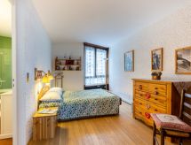 Apt 2 pièces 54 m2 au 1er étage. Grand séjour/salle à manger avec 1 divan-lit double (140 cm, longueur 190 cm), TV (écran plat). Sortie sur le balcon. 1 grande chambre avec 1 grand-lit (140 cm, longueur 190 cm). Cuisine (four, lave-vaisselle, 4 plaques vitrocéramiques, bouilloire électrique, cafetière électrique, Capsules pour machine à café (Nespresso) (NON INCLUSES)). Salle de bains, WC séparé. Chauffage. Balcon, situation sud. Très belle vue sur les montagnes et la piscine. A disposition: lave-linge. Internet (Connexion WIFI, en sus). Place de parking. Veuillez noter: logement non-fumeur. TV seulement FR. Détecteur de fumée.- Caractéristiques de l'hébergement