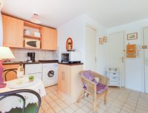 Studio 20 m2 au 1er étage, situation ouest. Aménagement fonctionnel: séjour/salle à manger avec 1 lit gigogne (2 pers. 2 x 80 cm, longueur 190 cm), TV (écran plat), air-conditionné. Coin cuisine (mini-four, 4 plaques vitrocéramiques, four micro-ondes, congélateur, cafetière électrique). Douche/WC. Balcon 8 m2, situation ouest. A disposition: lave-linge. Veuillez noter: logement côté rue.- Caractéristiques de l'hébergement