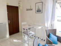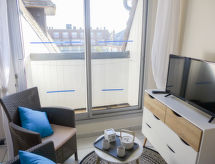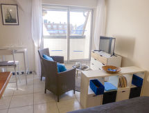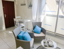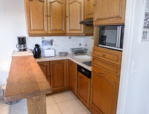 Résidence "Le Capricorne", de 3 étages. Dans la localité, à 400 m du centre de Cabourg, à 20 m de la mer, à 20 m de la plage. Infrastructures de la résidence: ascenseur. Parking public possible dans la rue. Magasins, magasin d'alimentation 400 m, supermarché 5 km, restaurant, bar, boulangerie 400 m, plage de sable 20 m, centre thermal "Thalazur" 3.5 km. Port plaisance 1 km, terrain de golf (18 trous) 7.3 km, golf miniature 350 m. Attractions à proximité: Casino 400 m, Deauville 25 km, Honfleur 48 km, Le Mémorial de Caen 35 km, Les plages du débarquement 64 km.Interior