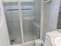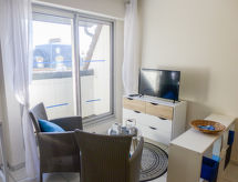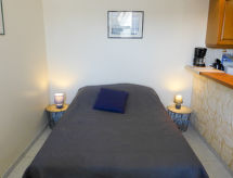 Studio 24 m2 au 3ème étage, situation sud. Séjour/salle à manger avec 1 grand-lit (140 cm, longueur 190 cm), TV (écran plat). Cuisine ouverte (lave-vaisselle, 2 plaques à induction, grille-pain, bouilloire électrique, cafetière électrique, combiné micro-ondes) avec bar. Douche/WC. Chauffage électrique. Balcon 2 m2. Vue sur la localité. A disposition: fer à repasser, sèche-cheveux. Internet (Connexion WIFI, en sus). Veuillez noter: logement non-fumeur. Détecteur de fumée.- Caractéristiques de l'hébergement