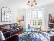 Villa 9 pièces 220 m2 sur 3 niveaux. Aménagement confortable et de style: salle à manger. Sortie sur le balcon. Salon. Sortie sur le balcon. Salon avec cheminée, TV, écran plat, vidéo, chaîne stéréo et DVD. Sortie sur le balcon. Cuisine (4 plaques de cuisson, four, lave-vaisselle, grille-pain, four micro-ondes, congélateur, cafetière électrique, Capsules pour machine à café (SENSEO) (NON INCLUSES)) avec table pour les repas. WC séparé. À l'étage supérieur: 2 chambres, chaque chambre avec: 2 lits (90 cm, longueur 190 cm). 1 chambre avec 1 grand-lit (1 x 160 cm, longueur 200 cm), WC séparés. Douche. 2ème étage: 1 chambre avec 1 lit gigogne (2 pers. 2 x 90 cm, longueur 190 cm). 1 chambre avec 2 lits (90 cm, longueur 190 cm). 1 chambre avec 1 lit gigogne (2 pers. 2 x 90 cm, longueur 190 cm), douche. Salle de bains, WC séparé. Barbecue. A disposition: lave-linge, sèche-linge, fer à repasser, lit bébé jusqu'à 3 ans. Internet (Connexion WIFI, gratuit). Veuillez noter: maison non-fumeur. Détecteur de fumée. A noter : 2 lave-vaisselle au total. 2 lave-linge au total. Cheminée à gaz. Alarme et vidéo surveillance extérieur et intérieur de la maison.- Caractéristiques de l'hébergement