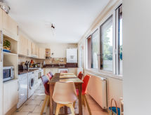 Villa "Le Cyclamen", de 3 étages, mitoyenne. Dans la localité, à 50 m du centre, à 300 m de la mer, à 300 m de la plage. A usage privé: cour. Ping-pong, meubles de jardin, barbecue. Infrastructures de la Maison: chauffage central. Place de parking sur le terrain. Magasins, restaurant 50 m, piscine 600 m. Tennis 100 m, centre équestre 200 m. Le propriétaire n'accepte pas les groupes. Le propriétaire n'accepte pas les groupes de jeunes.Interior
