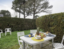 "Le Dolmen", apt 2 pièces 34 m2, au rez-de-chaussée. Logement idéal pour 2 adultes + 2 enfants. Partiellement rénové en 2021, aménagement agréable: séjour/salle à manger avec 1 divan-lit double (1 x 140 cm, longueur 190 cm), TV (écran plat). Sortie sur la terrasse. 1 chambre avec 2 lits (80 cm, longueur 190 cm). Coin cuisine (four, 2 plaques vitrocéramiques, cafetière électrique). Salle de bains, WC séparé. Chauffage électrique. Petite terrasse 6 m2. Meubles de terrasse. Vue sur le jardin. A disposition: lave-linge, fer à repasser, sèche-cheveux. Internet (Connexion WIFI, gratuit). Place de parking (1 Voiture). Veuillez noter: logement non-fumeur. Accès au parking étroit (véhicule standard).- Installations