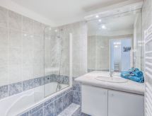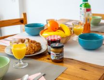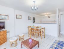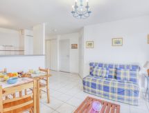 Apt 2 pièces 45 m2. Aménagement confortable: séjour/salle à manger avec baie vitrée avec 1 divan-lit double (1 x 140 cm, longueur 190 cm), TV (écran plat). Sortie sur la terrasse. 1 chambre avec 1 grand-lit (1 x 140 cm, longueur 190 cm). Cuisine (four, 4 plaques vitrocéramiques, cafetière électrique, combiné micro-ondes). Salle de bains, WC séparé. Chauffage électrique. Grande terrasse 13 m2. Meubles de terrasse. A disposition: lave-linge. Internet (Connexion WIFI, gratuit). Garage (1 Voiture). Veuillez noter: 1 animal/ chien autorisé. Détecteur de fumée.- Caractéristiques de l'hébergement