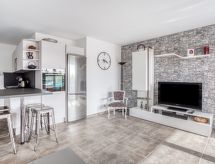Apt 2 pièces 53 m2 au 1er étage. Complètement, aménagement confortable et agréable: séjour/salle à manger avec TV (écran plat), air-conditionné. Sortie sur la terrasse. 1 chambre avec 1 grand-lit (160 cm, longueur 190 cm), TV (écran plat). Cuisine ouverte (four, lave-vaisselle, 3 plaques à induction, bouilloire électrique, four micro-ondes, congélateur, cafetière électrique) avec table pour les repas. Douche, WC séparé. Chauffage électrique. Terrasse 20 m2. Meubles de terrasse, chaises longues (2). Vue sur la piscine. A disposition: lave-linge, sèche-cheveux. Internet (Connexion WIFI, en sus). Place de parking No 14. Veuillez noter: logement non-fumeur. TV seulement FR. Détecteur de fumée. 830 19000423IN- Caractéristiques de l'hébergement